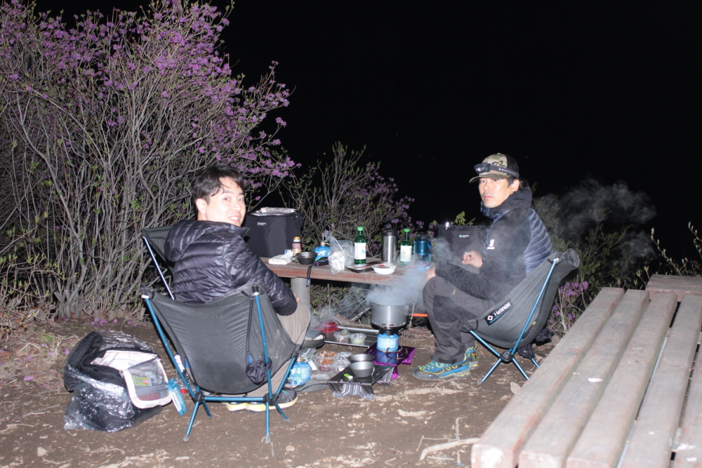 퇴근후 만나 느즈막하게 야간 산행후 오늘은 삼겹살.